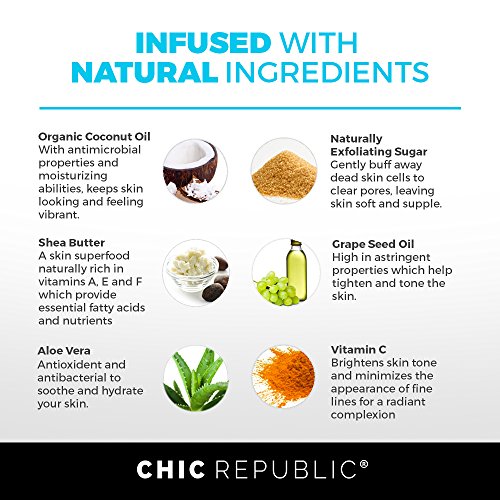 - ❇️ GENTLE EXFOLIATION WITH SUGAR GRANULES: Our charcoal sugar scrub uses natural sugar granules, not salt, to effectively remove old, tired skin without damage. Great for removing blackheads! Cleanse and tighten your skin while polishing for a smooth, fresh glow.