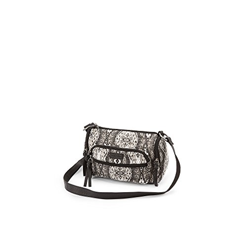 Main zip compartment for your small essentials. Adjustable shoulder strap. Front and side zip pockets for additional storage. Embroidered logo patch adorns front. Materials: 80% cotton, 20% polyurethane. Imported.
