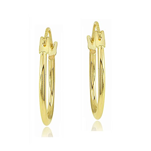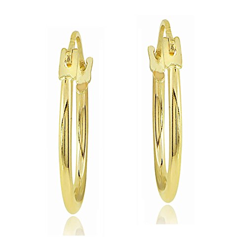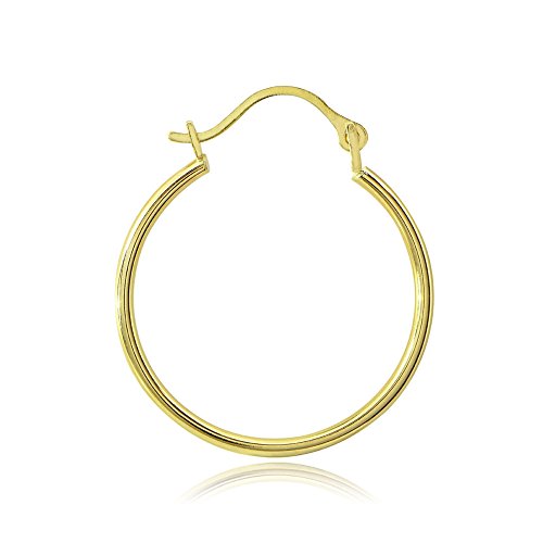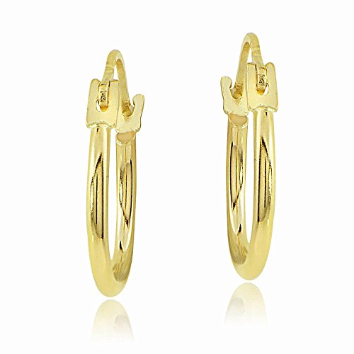 Luxury and Elegant 14K Yellow Gold 1.3mm Round Hoop Earrings, 15mm