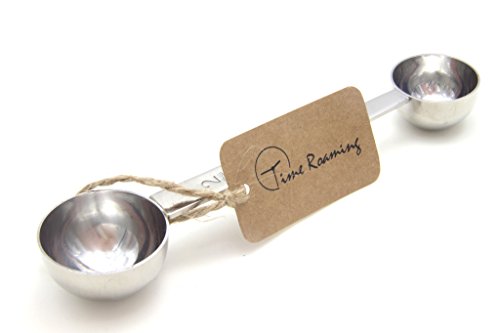 Time Roaming coffee scoop with a long handle which is easy to store in coffee canisters or bags or cans, very comfortable to use. Dual-ended scoop measures, with 1&2 tablespoon bowls.