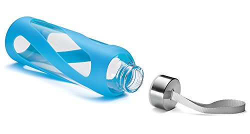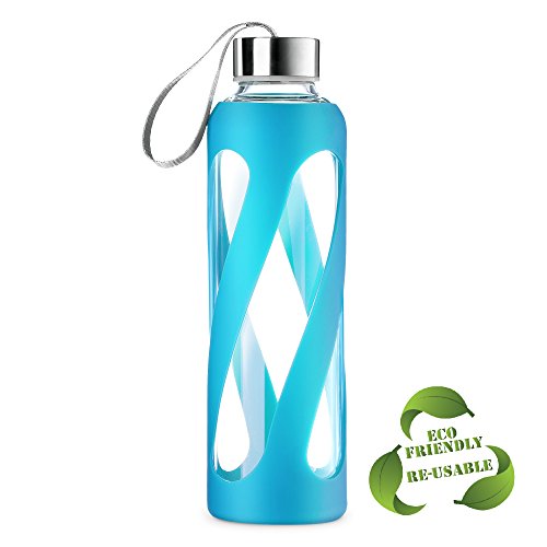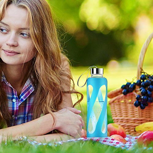 SWIG SAVVY Stylish Real Borosilicate 20-oz Glass Water Bottle with Silicone Sleeve - Stainless Steel Cap - Blue