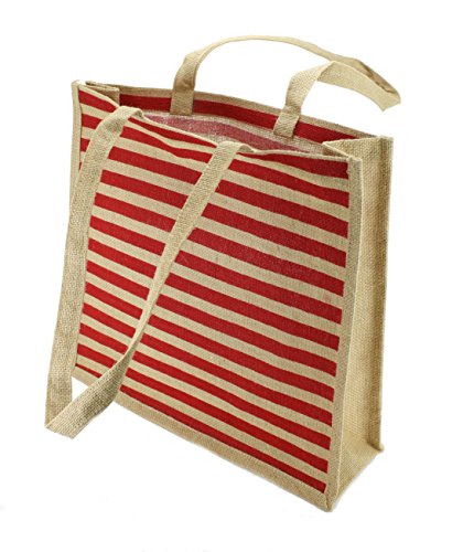 Kel-Toy NBS116-211 Stripe Burlap Tote Bag, 16" W x 15.5" H x 5" D, Natural/Red