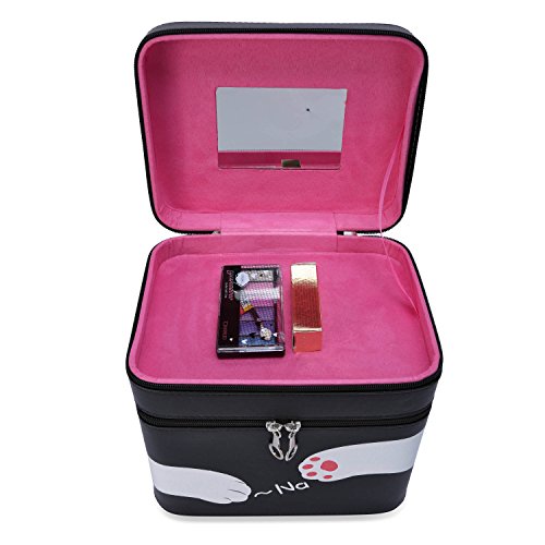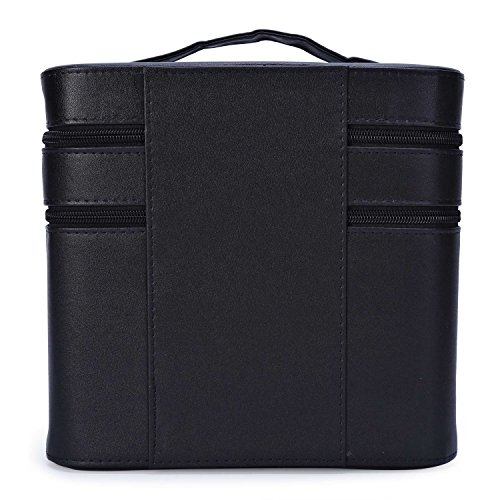 TopWigy Cosmetic Bag Double Layer PU Leather Travel Toiletry Bag Organizer with Mirror (Black)