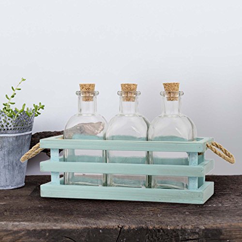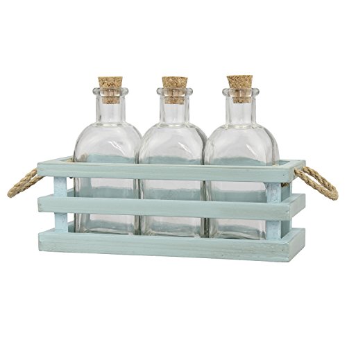 Stonebriar Bottles with Wood Tray and Rope Handles, Set of 3