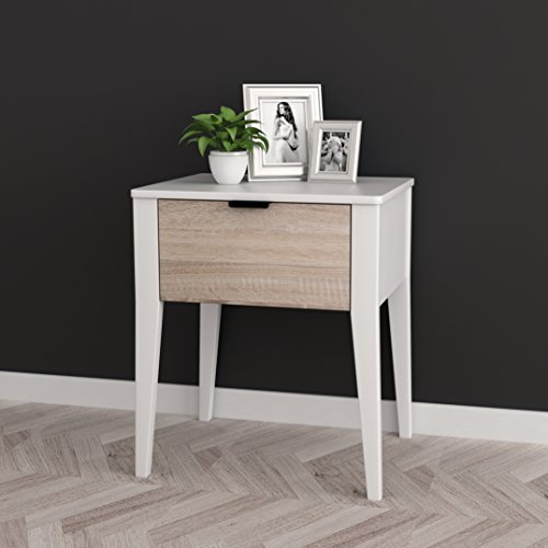Studio : eHomeProducts Publisher : eHomeProducts Product Description This White / Sonoma Oak Side End Table Nightstand with Storage Drawer is a great addition to your home decor. Features one drawer for storage. Measures: 22.5 inches high x 19 inches wide x 16 inches deep. Assembly required. 0