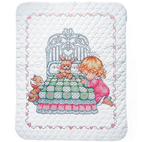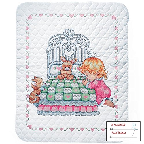 Tobin Bedtime Prayer Girl Baby Quilt - Stamped Cross Stitch Kit T21709 - 36 by 43 inches - with Gift Card