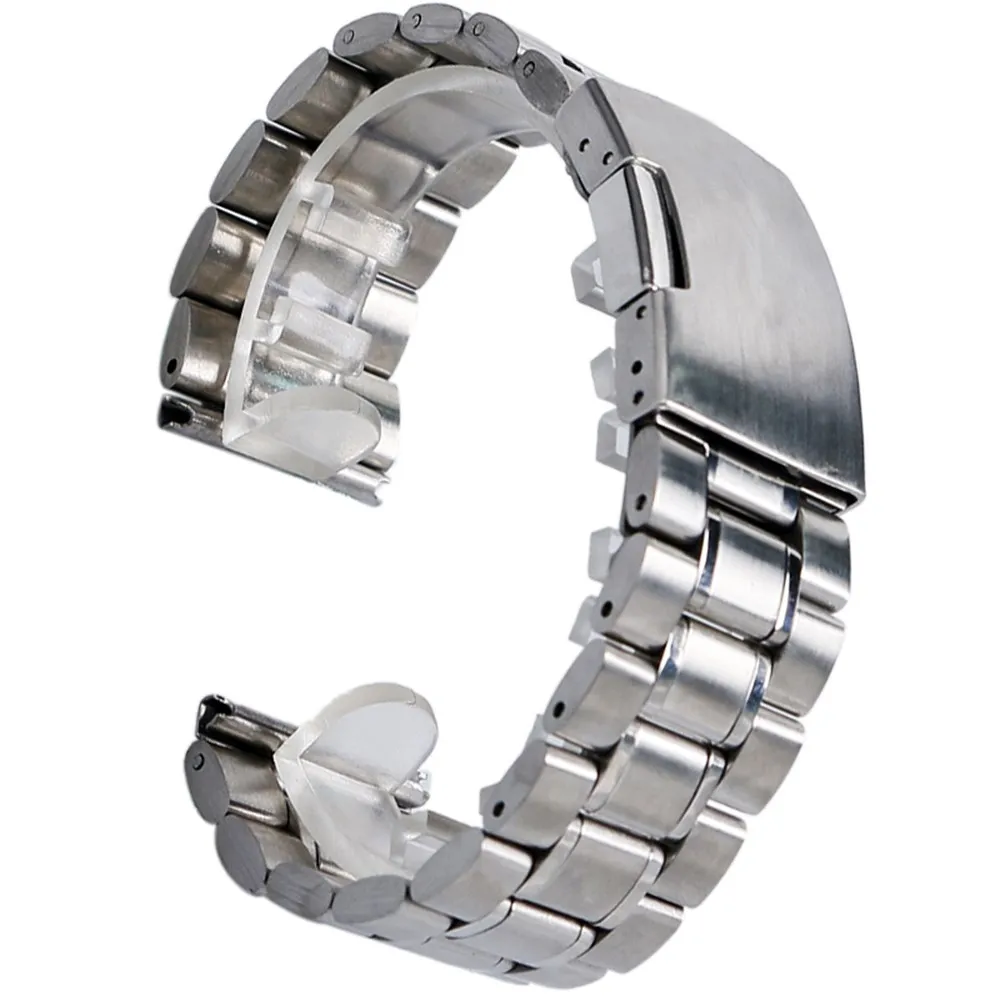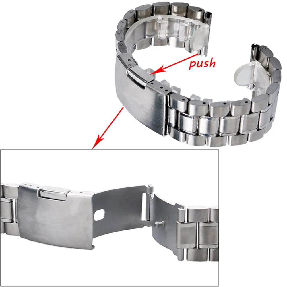 항목 설명:100% 브랜드 새로운 높은 품질.재질: 스테인레스 스틸버클 유형: 배 걸쇠 하나의 푸시 버튼밴드 색상: 실버밴드 폭: 18/20/22 미리메터밴드 길이: 약 17 센치메터