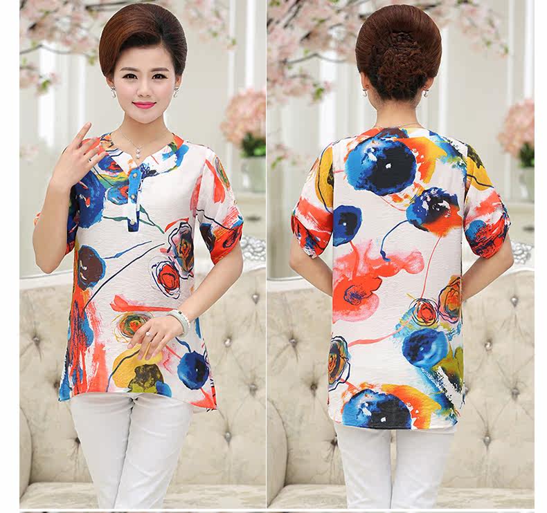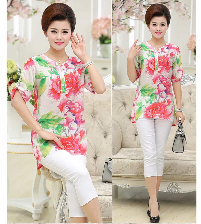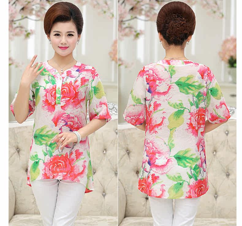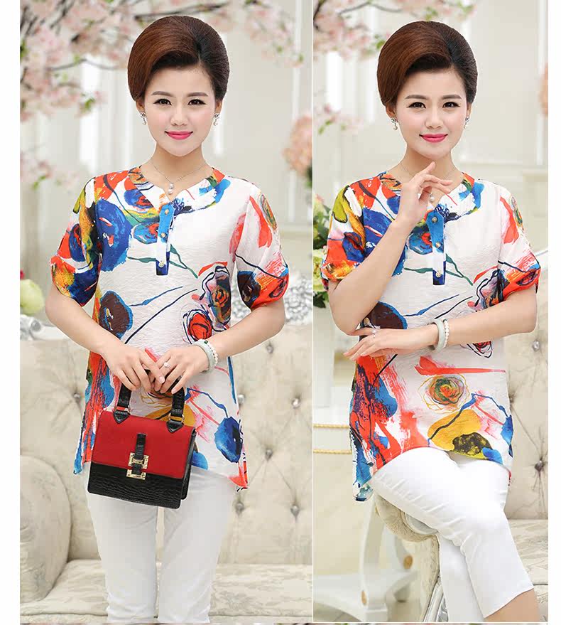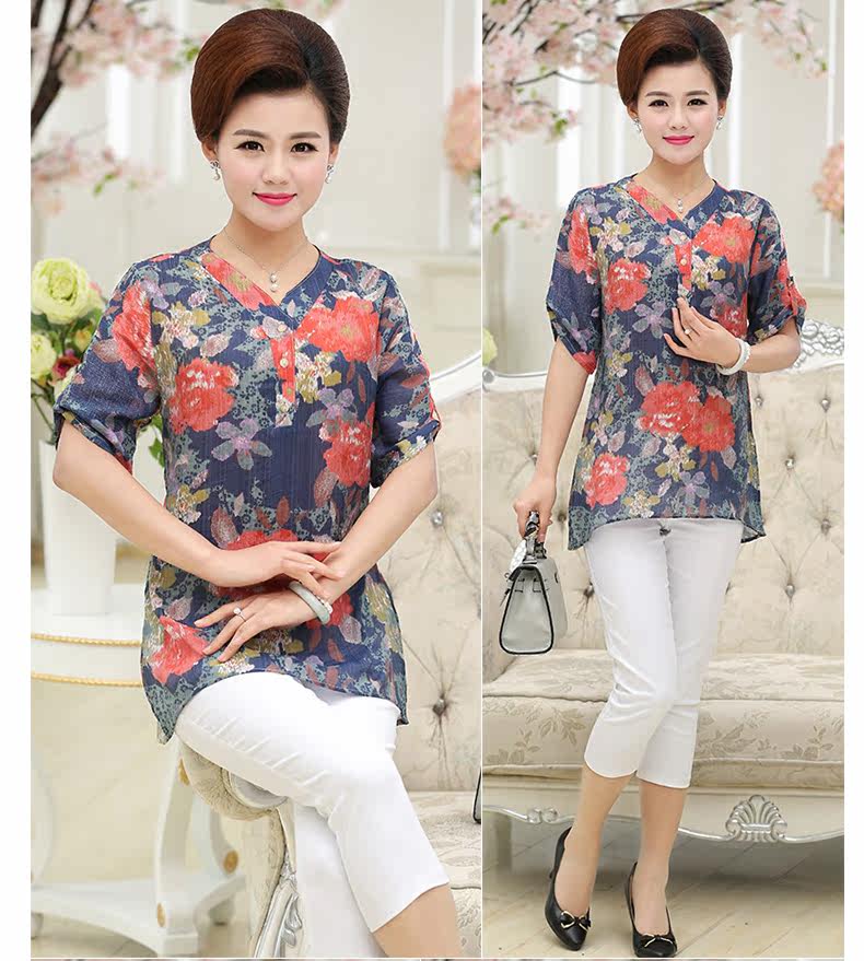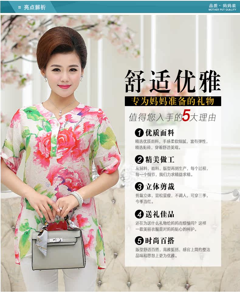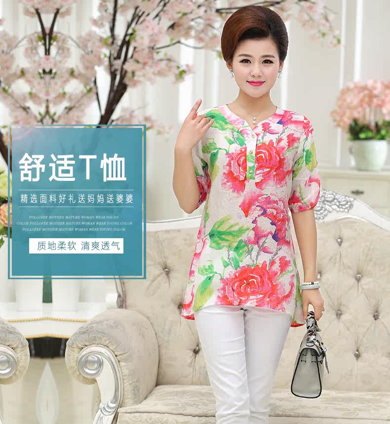 中年女装夏装40-50岁妈妈装短袖T恤中老年女装夏装上衣夏季T恤