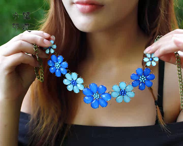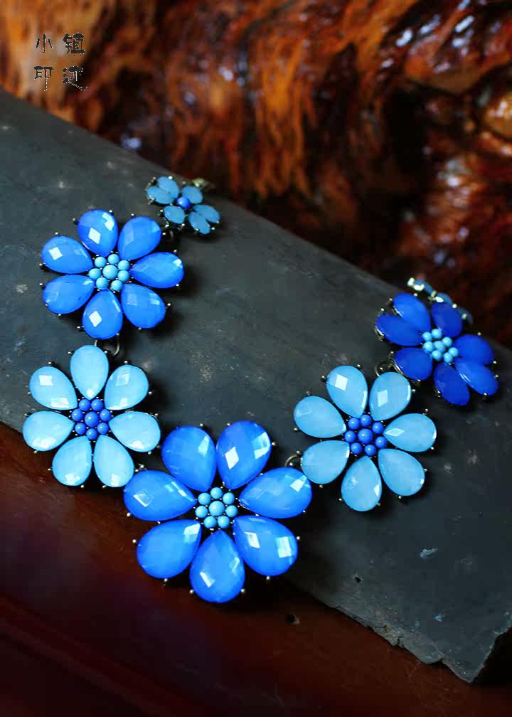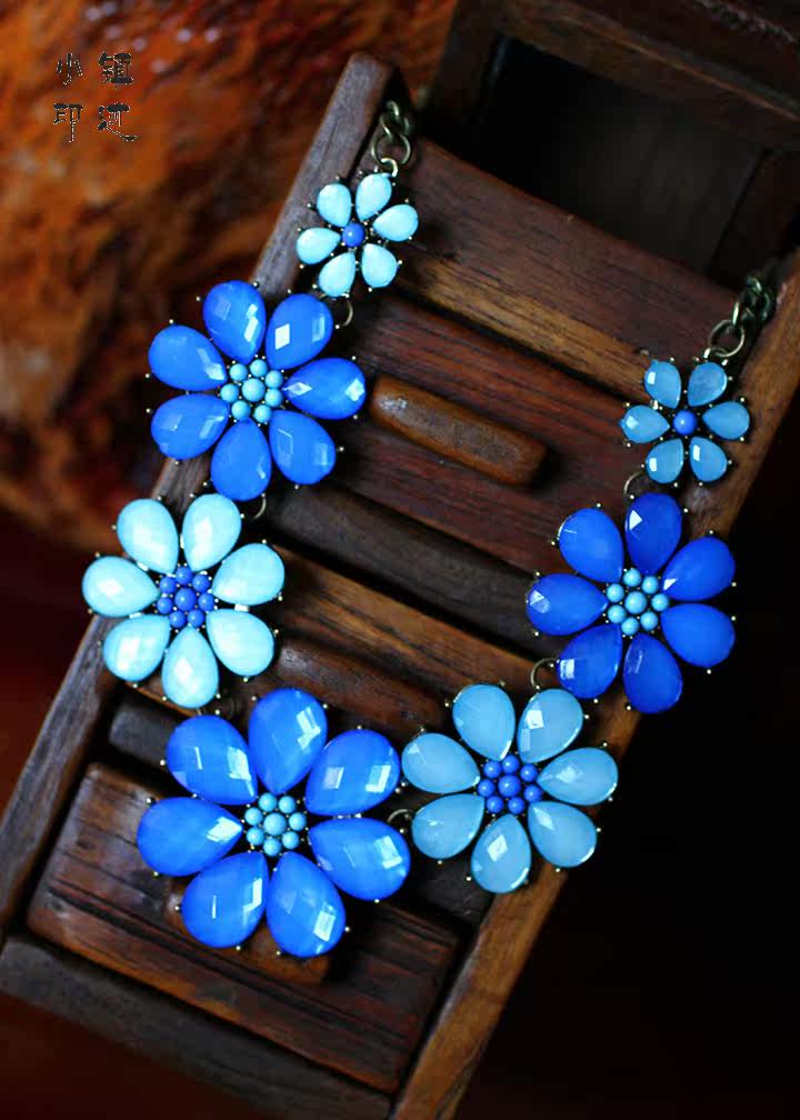 Crystal flower necklace vintage train (blue)