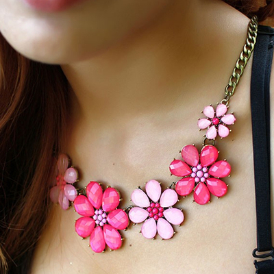 Crystal flower necklace vintage train (Pink)