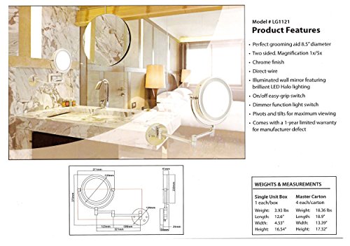 Infiniti Vanity Mirror 8.5 inch Chrome Illuminated Cosmetic Wall-mount Mirror Featuring 1x/5x Magnification and Brilliant LED Halo Lighting