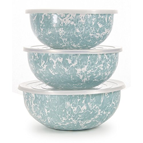 Enamelware - Sea Glass Teal Swirl Pattern - Set of 3 Mixing Bowls