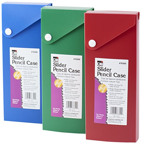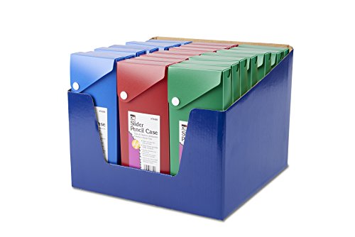 Charles Leonard Slider Pencil Case Box with Slide Out Tray and Snap Closure, Assorted Colors, 24 Pencil Boxes and Shelf Tray (76300-ST)