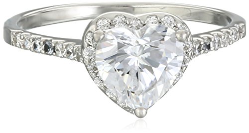 10k White Gold Heart Ring Made with Swarovski Zirconia, Size 8 (1 1/2 cttw)