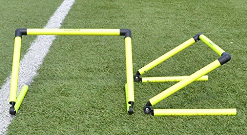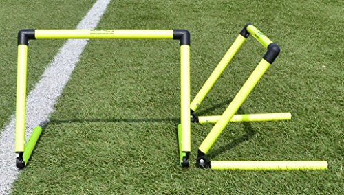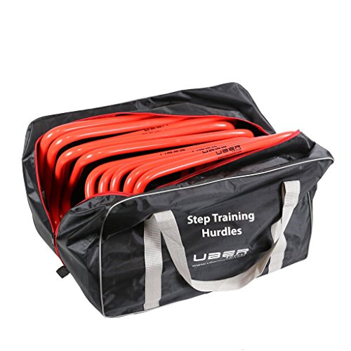 -. Feature : (10) Step Training Hurdles - Bright Colors for clear visibility; (1) Nylon Carry Storage Bag / Mix them together with other sized hurdles for a variation in your training workout / Perfect for soccer, tennis, football, la crosse, field hockey, track and field and more / Great training tool for es, trainers and sports teams / Made from lightweight PVC material for durability