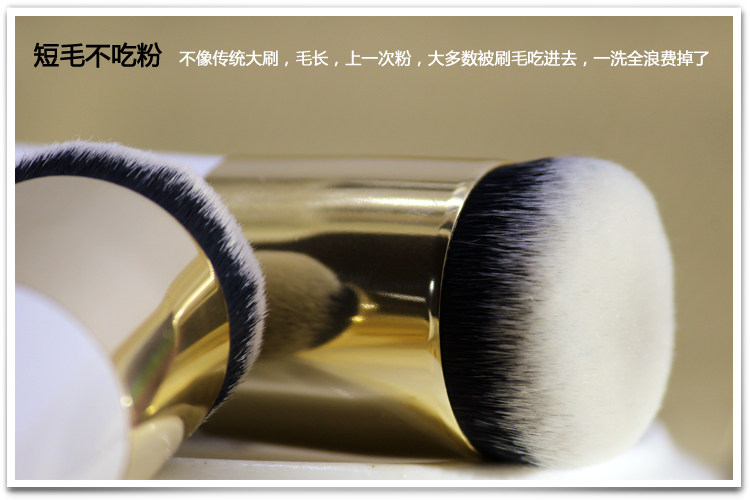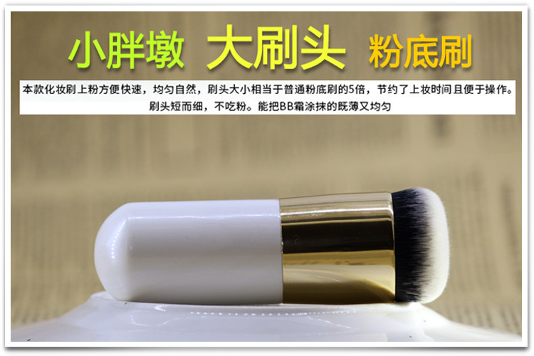 小胖墩的特点是毛毛很短 专门用于粉底液和打底的 千万不能用作散粉哟,因为短毛,涂抹的时候非常有力度,很轻松的就能把BB霜涂抹的又薄又均匀,比海绵的优势是不吸粉,而且毛刷的特性能让每个细缝毛孔都均匀上粉,所以最后的效果特别自然!最让人惊叹的地方就是上底妆太神速啦,脸部点好BB霜,化妆刷画圈打个转,底妆就OK啦,对于懒人太太适合啦!!个人建议BB霜可以少量多处的点在脸部,再使用它刷均匀,这样的效果比较清透自然,如果要遮瑕,就多重复几次,这样效果比一次上一大坨BB霜效果要好很多呢!