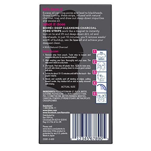 Biore Deep Cleansing Charcoal Pore Strips for Nose, 18 Count