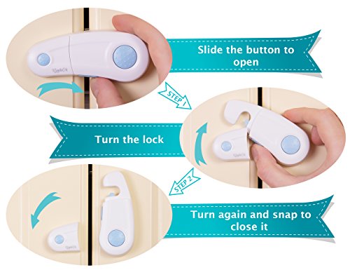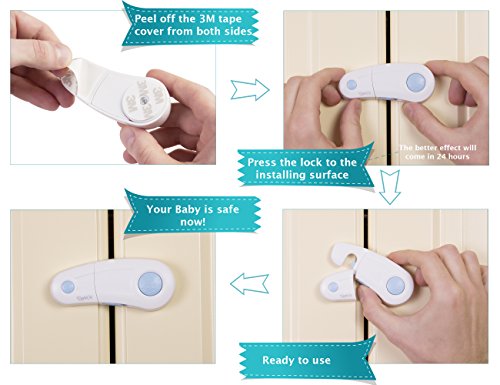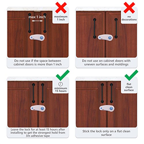 EASY TO INSTALL & REMOVE: To install our child safety cabinet locks simply peel the cover of the 3m adhesive, stick the cabinet child lock on the surface you want to child proof and you’re done!
