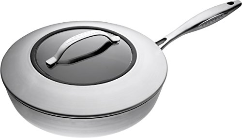 The Scanpan CTX Sauté Pan is the perfect every day pan in the modern kitchen. Whether you're searing scallops, sautéing vegetables or making a frittata, the end result is always the same: delicious food that is easy to cook. Multi-layer fused construction results in rapid and even heat distribution throughout the body of the cookware. Recycled aluminum core with Ceramic Titanium PFOA-Free Non-stick interior surface and 18/10 Stainless Steel exterior. Pan is oven and broiler safe so going from the stove top to the oven has never been easier. Stainless Lid features glass window to view cooking progress. Pan is easy to care for, require 5-second cleaning by hand or just throw it in the dishwasher - this pan will last a lifetime.Feature