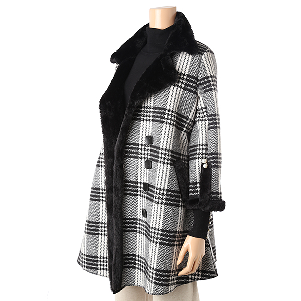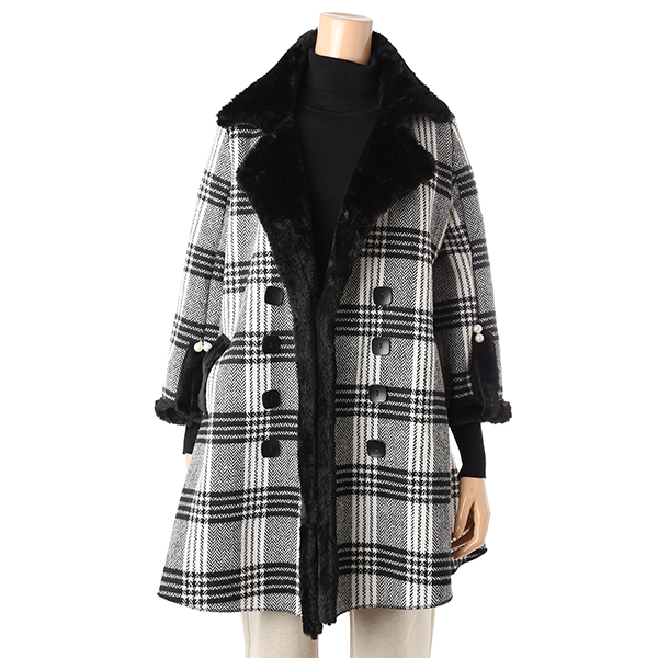 A라인의 귀여운 스타일의 퍼 코트입니다.