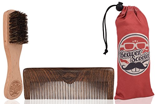 Beechwood Beard Brush and Sandalwood Comb Set With Microfiber Pouch