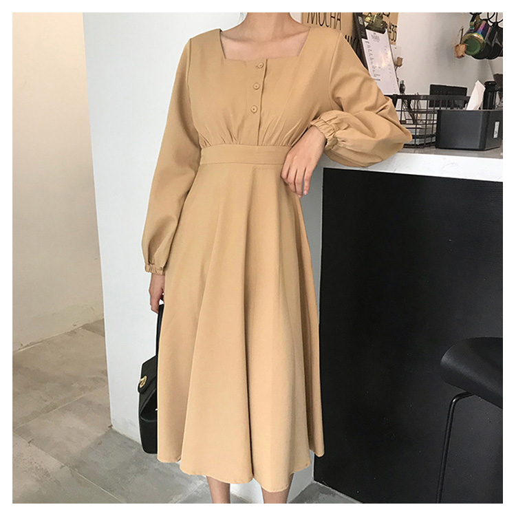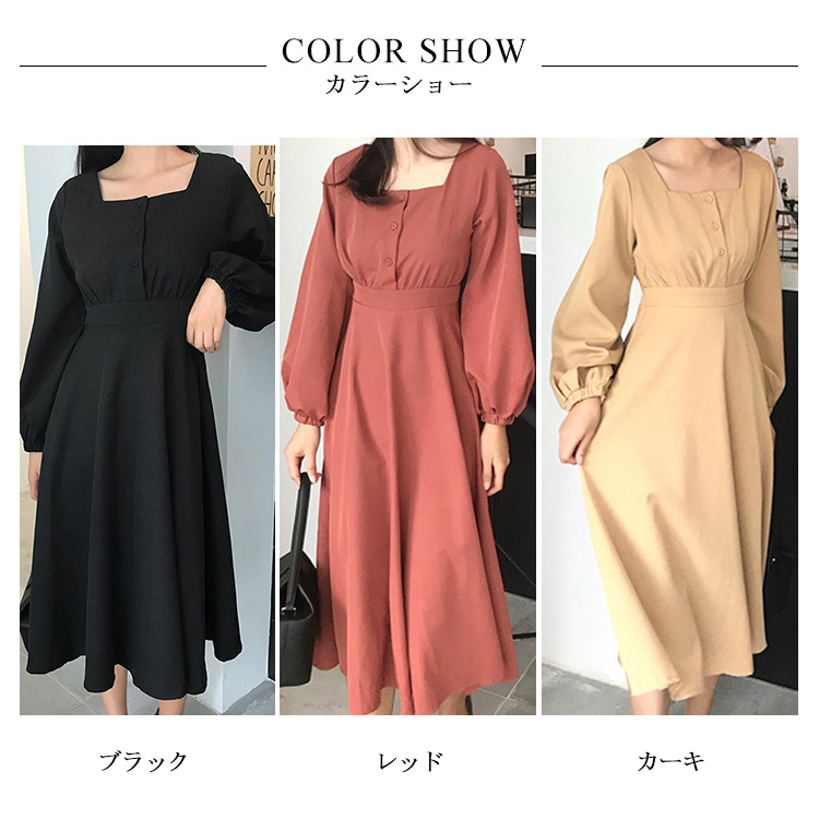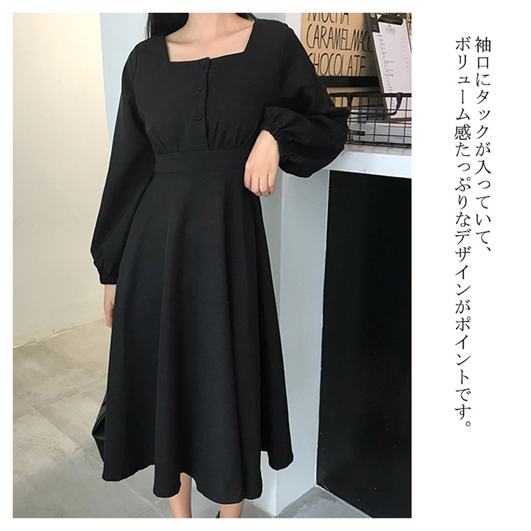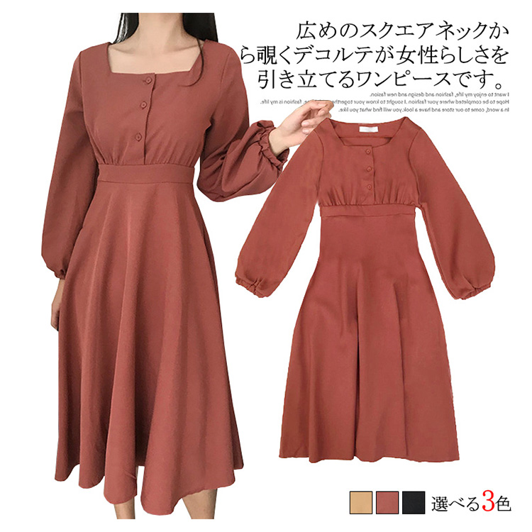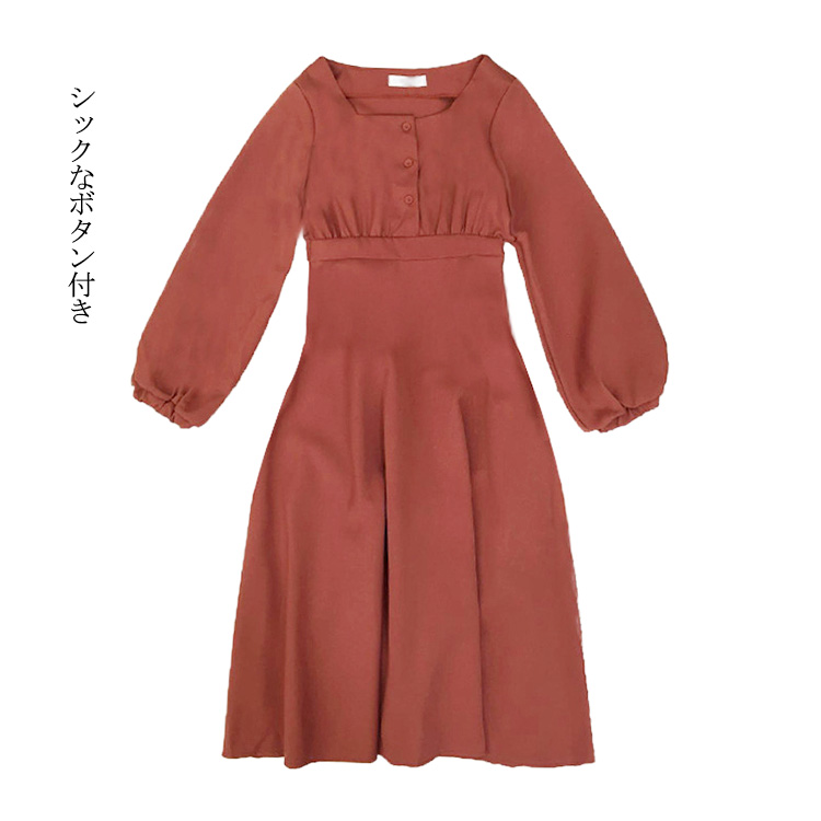 | 広めのスクエアネックから覗くデコルテが女性らしさを引き立てるワンピースです。深すぎず浅すぎない絶妙なネックラインなので、デコルテをきれいにみせつつ、インナーが見える事もありません。袖口にタックが入っていて、ボリューム感たっぷりなデザインがポイントです。Aラインのきれいなフレアシルエットで、上品な印象に与えるアイテムです。 | |