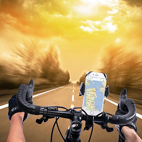 - MULTIPLE PROTECTIONS: Non-slip rubber grip cradles of the bicycle cell phone mount secures your device all-around to guard against any accidental falls. And silicone band allows extra security for your device.