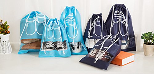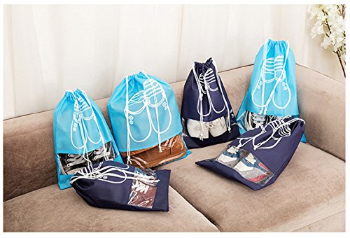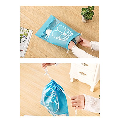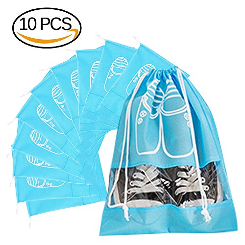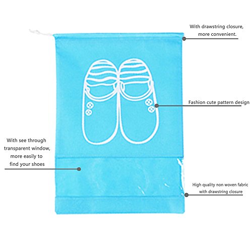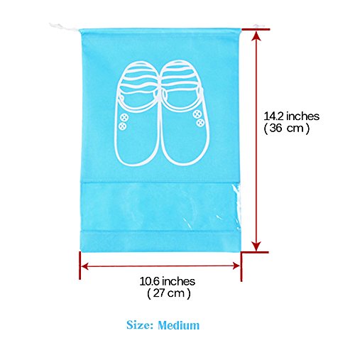 10 PCS Non-Woven Shoe Bags Portable Travel Shoe Storage Organizers with Transparent See Through Window and Dust-proof Drawstring for Traveling / Carrying (Medium, Blue)