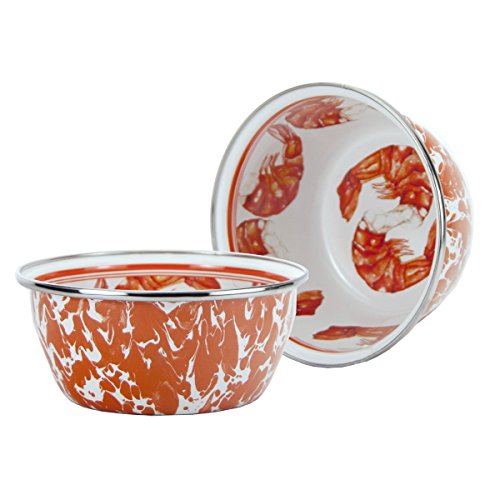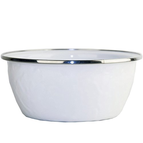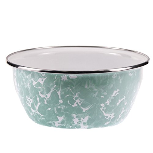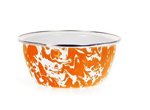Golden Rabbit 5.5"X2.5" Black swirl enamelware salad bowl. This enamelware is made of carbon steel coated with a porcelain enamel and trimmed in stainless steel. There will be variations in the shading of colors and pattern formations which are the results of the hand-dipped process. Golden Rabbit enamelware is created using a traditional handmade production method that has changed very little since the late 18th century. Each piece is hand-dipped and fired at extremely high temperatures causing the steel to Contract and fusing the porcelain enamel to the steel, creating a durable, non-porous surface.Feature
