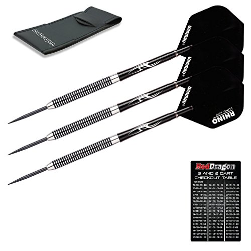 PEGASUS TUNGSTEN STEEL DARTS SET - 26 Gram - Black Red Dragon Shafts, Black Extra Thick Flights, Case & Red Dragon Checkout Card