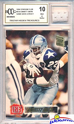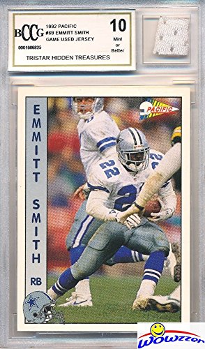 Vintage 1990’s Emmitt Smith Hidden Treasures with a Piece of Authentic Emmitt Smith GAME USED Jersey Graded BGS Beckett 10 Mint GGUM Card! Awesome HIGH Grade Vintage Emmitt Game Used Card! Wowzzer!
