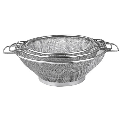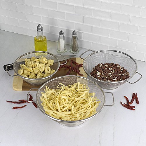 Home Basics Mesh Colander Strainer with Handles, 3 Piece Set, Silver