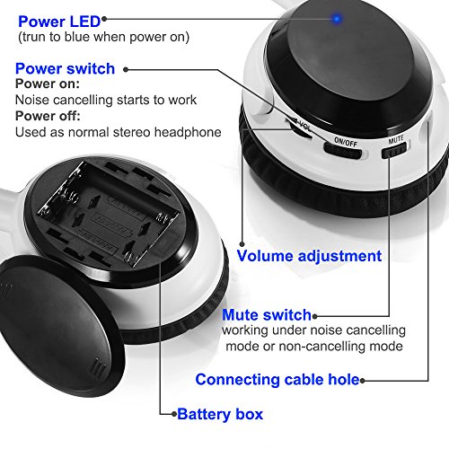 -. Feature : ♫ A great headset for Music: Built-in ANX noise reduction technology, effectively reduce 85% background noise. Create Amazing listening environment, you'll quickly lose yourself in the soundtrack of your day. / ♫ Light wight design, Super comfortable, suitable for long time use, especially in noisy office. Good companion for travelling. / ♫ Powered by 3*AAA batteries(not included), also can be used as normal stereo headphone after power off, easy to listen to and use. / ♫Adaptable Audio: Cooperate with MP3,CD, DVD player and cabin entertainment system. / ♫ Notice: Please turn the power switch off if no battery in the headset. Please keep the "MUTE" switch to turn off state.