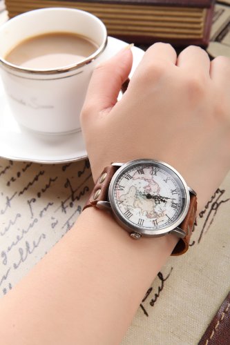 -. Feature : world map Watch / Handmade Strap Watch / 100% New Condition,adjustable size. / Genuine Leather Watch / Gift Box Packaging