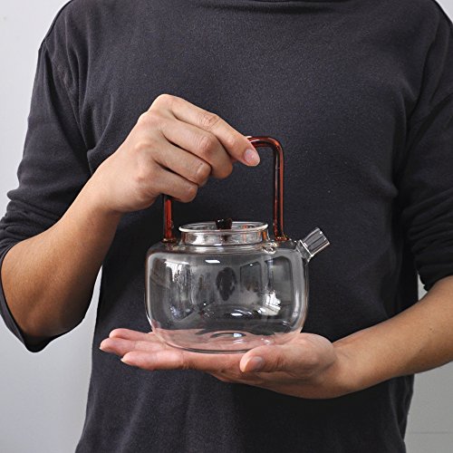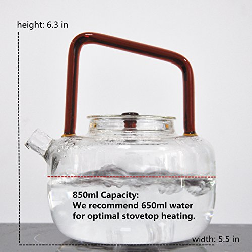 Cunzhai Tea Kettle 29 oz (850ml) Tea Maker Stovetop Safe Galss Teapot (Red) ¡­