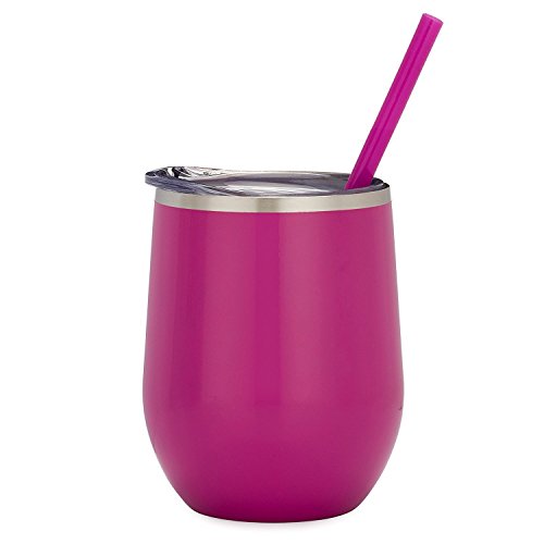 The Maars Bev Steel is a 12oz stemless wine glass that keeps your drink cold for hours! It is double walled 18/8 stainless steel copper coated, vacuum insulated travel tumbler with a powder coated finish. It comes with a clear push-on lid and matching straw. They are non-toxic and BPA free.Feature