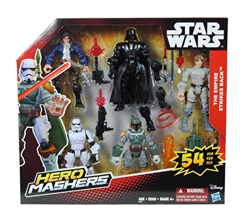 -. Binding : Toy -. Brand : Star Wars -. EAN : 0630509373352 -. Feature : Includes 5 figures and 6 accessories / Mix and match parts to create custom mash-ups / Each figure has 9 points of articulation / Parts are compatible with other Star Wars Hero Mashers figures / WARNING: CHOKING HAZARD - Small parts. Not for children under 3 years. -. IsAdultProduct : 0 -. Label : Hasbro -. Manufacturer : Hasbro -. MPN : 944832 -. PackageQuantity : 1 -. PartNumber : 944832 -. ProductGroup : Toy -. ProductTypeName : TOYS_AND_GAMES -. Publisher : Hasbro -. Studio : Hasbro -. Title : Hasbro Mashers. star wars hero mashers 5 pack -. UPC : 630509373352