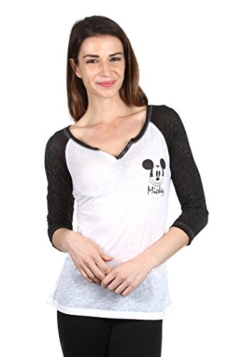 Disney Mickey Mouse Juniors Henley Raglan Long Sleeve (M, Black)