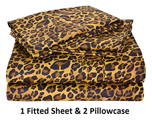 ARlinen 100% Egyptian Cotton 3-Piece (1 Fitted Sheet & 2 Pilllowcase) Only Sateen 800-Thread-Count Full Size Fit Mattress up to 15 Inch Deep Pocket Premium Quality Leopard Print