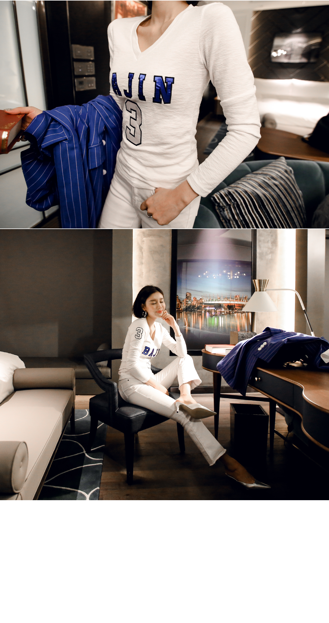 Vネックで女性らしいネックラインを演出してくれ