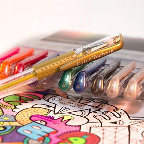 COLOR TECHNIK GEL PENS: Have a Smooth Ink Flow For Smoother Coloring & Writing. Strong Durable Tips that produce perfect lines, Acid Free, Non Toxic.