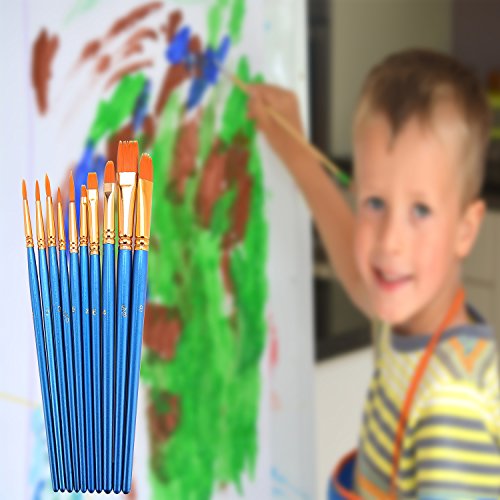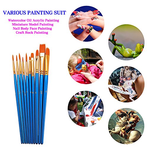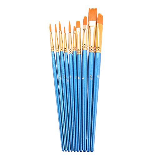 Hundor 10Pieces Paint Brushes Blue Round Pointed Tip Nylon Hair Brush Set