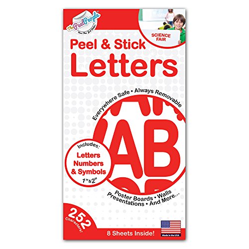 The Peel People 1" and 2" Peel & Stick, Self Adhesive, Everywhere Safe Solid Letters and Numbers (Red)