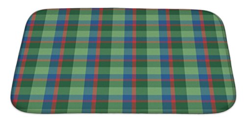 Gear New Green Blue & Red Plaid Bath Rug Mat No Slip Microfiber Memory Foam