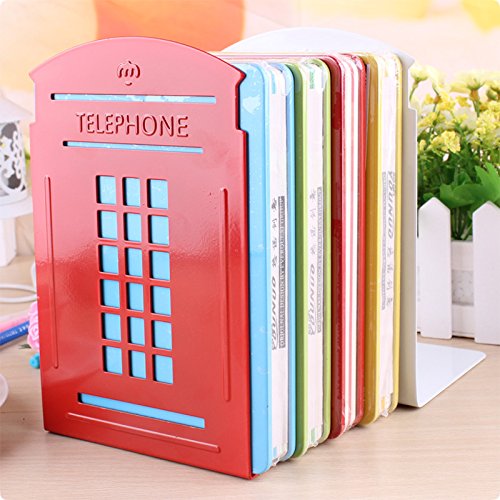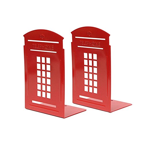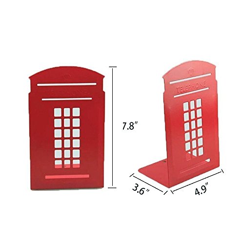 Bookends Red Pair Non-Slip Heavy Metal Durable Sturdy Strong Books Organizer Telephone Booth Bookshelf Decor Decorative Bedroom Library Office School Supplies Stationery Gift (London-Red)