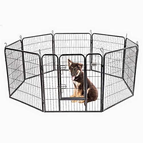 -. Binding : Misc. -. Brand : Pet Premium -. Color : Black -. EAN : 0653476541463 -. Feature : CONFIGURED IN DIFFERENT SHAPES - can be configured in different shapes and use in so many different ways. Set up as a rectangle or octagon. / RUSH RESISTANT - Powder coated Black vein finished. Coating ensures durability and longevity. / METAL STAKES - Metal stakes for easy panel arrangement. Can push stakes to the ground to secure the playpen in place. / DIMENSION - For Each Panel: 31"W x 32"H. Dimension for Each Door: 13"W x 24"H. / CAN CONNECT MORE FOR LARGE AREA - You can connect more playpens together to cover a larger area. -. Label : Pet Premium -. Manufacturer : Pet Premium -. PackageQuantity : 1 -. ProductGroup : Pet Products -. ProductTypeName : PET_SUPPLIES -. Publisher : Pet Premium -. Studio : Pet Premium -. Title : PetPremium Dog Pen Metal Fence Gate Portable Outdoor RV Play Yard | Heavy Duty Outside Pet Large Playpen Exercise | Indoor Puppy Kennel Cage Crate Enclosures | 32" Height 8 Panel -. UPC : 653476541463