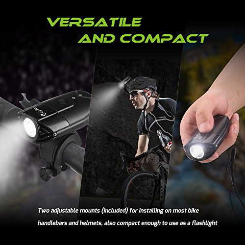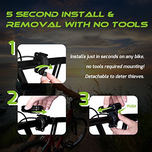 Versatile, Works on All Bicycles, Streets, Kids Mountains This super-brilliant 800 Lumen LED bike light features rugged waterproof, compact design, lightweight construction, and easy, no-tools-required mounting. It has 3 settings: full Brightness, 50% brightness and flash mode for added safety and battery-life economy. It makes the perfect gift for any cycling enthusiasts.