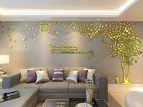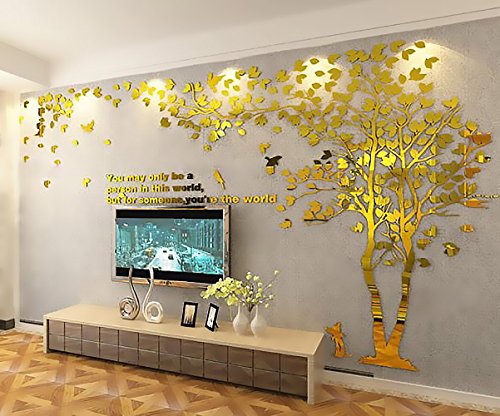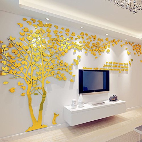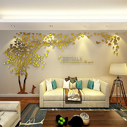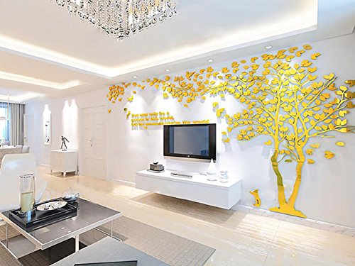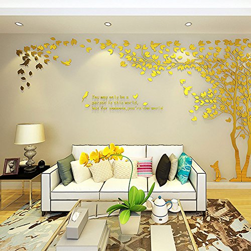 -. Title : N.SunForest 3D Crystal Acrylic Couple Tree Wall Stickers Gold Self-adhesive DIY Wall Murals Home Decor Art