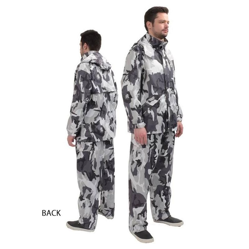 仕事でもアウトドアでも使える抑えめのカモフラ柄で、デザイン性と機能性を兼ね備えたレインウェアです。 |