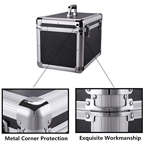 - Durable&Exquisite:High Quality;Metal case with Metal Corner Protection,Rubber Base to reduce the friction damage, Reinforced handle, multiple rivets reinforcement box,Built-in shockproof EVA cotton,protect your things from impact and reduce damage